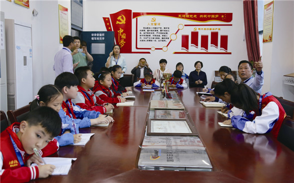 纪念改革开放40周年,看我定远72变。活动第一站,来自定远七校的学生代表,走进新区实验小学。当天,大雨滂沱,却丝毫未能浇灭同学们寻访校园变化的热情。瞧!屋内暖意融融,同学们正与新区实验小学李永书校长面对面交流呢!他们在聆听与提问中,在参观校园的步伐中,进一步体会过去求学条件的艰辛,珍惜如今幸福生活的不易。这一番交流下来,每一位同学都收获满满。