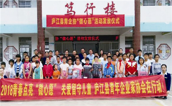 一个微心愿,一朵希望花,社会,因爱而快乐!庐江县青年企业家协会的十多名代表,向庐江县盛桥镇陡岗小学留守未成年人发放了45个“微心愿”爱心礼包。同学们领着新书包、文具盒和彩笔,一个个高兴地笑着、跳着,鲜艳的红领巾在胸前飘舞,整个校园充满了欢乐,洋溢着喜悦的氛围。勿以善小而不为,人间大爱,从点滴做起,让我们为闪亮的青春点赞!