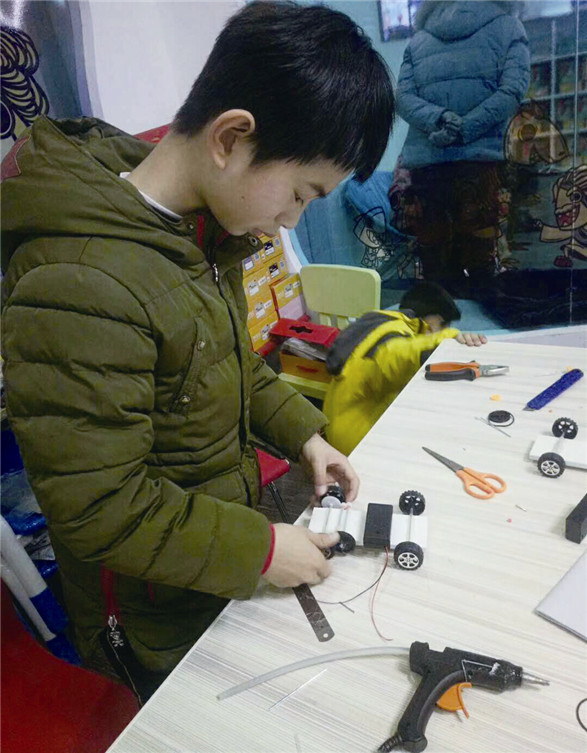 说到动手制作,李奕桐说,目前他会使用热熔胶枪,制作太阳能小车、智能机器人等各类作品;会使用电烙铁焊接各种线路板;会用显微镜观察各类微观植物世界;还学会了制作玻片等等。“我最喜欢的,是下课后和同学们来一场机器人比赛,机器人都是自己做的,可好玩了!我还给妈妈做了一个光控的小夜灯,是面包车的造型,晚上大灯一关,小夜灯就会自己亮起来!”