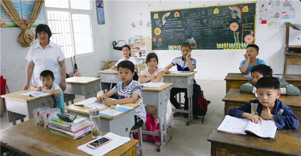 夏桂林所在的学校位置偏僻,有两间教室,四个教学班,分为学前班、小学三年级、四年级、五年级,学生的年龄跨度从5岁到12岁。夏桂林是学校里高年级的学生,平时上课的时候,除了和她同年级的同学之外,课堂上还有低年级的同学一边自习、一边等待老师上课。“因为条件有限,只能两个班一起上课。”夏桂林的老师丁保花说道。