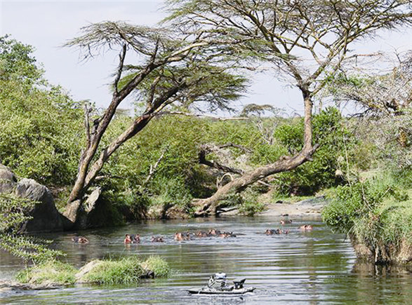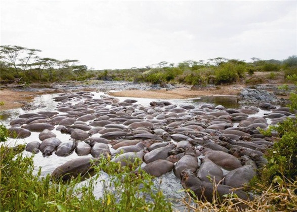 站在肯尼亚和坦桑尼亚边境交界处的一座桥上,人们能看到,每当马拉河上涨几十厘米,死鱼就会被冲上岸,其数量有时达到上千。鹳、秃鹫、鳄鱼和鬣狗会迅速把尸体解决掉。“如果你没有亲眼目睹这一现象,根本不会知道鱼正在死亡。”克里斯·达顿和阿曼达·苏巴鲁斯基是一对夫妻,他们发现了这个问题,并做了一系列越来越大胆的实验,比如远程控制的船只、计算机模拟、临时水坝和含有排泄物的大型水箱等等,试图揭开谜底。据说当地的护林员也知道这个事,但他们认为这是上游的农民,在田地里喷洒杀虫剂造成的。其实不是!真正的凶手是——河马!