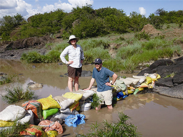 为了证实这一点,两人想尽了各种办法。“我们讨论了是否可以通过一个水池来制造洪水,其他研究人员说,你们为什么不建一座小型水坝呢?”受此启发,两人用沙包截断了一个水池的水源。这个水池位于河马的领地内,但不是经常有河马光顾。他们又找来三个人,其中一人拥有一辆大卡车,另一人拥有两个容积为4000升的大罐,第三个人拥有一个大型污水泵。然后,他们把1.6万升被河马粪便污染的水转移到他们的人工水池中。搬走沙包后,他们发现,下游水中的含氧量确实大幅降低。