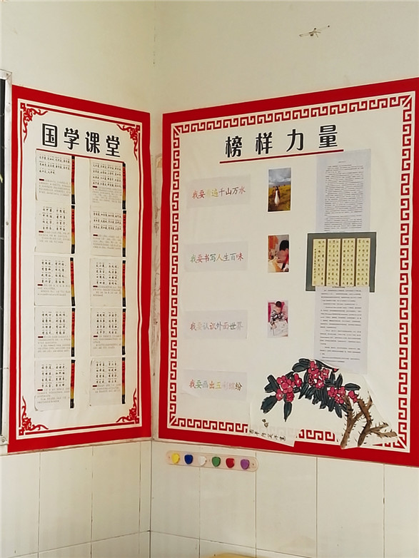 走进六(3)中队教室,仿若身处于一个幽雅洁净、富有内涵的人文环境中。从一年级开始,中队辅导员杨新梅老师就利用教室的各个墙壁和空间,创建特色班级文化。教室里有一面红色的文化墙,每学年队员们用智慧的头脑、勤劳的双手描绘出一幅幅属于自己中队的蓝图。大家根据中队特点,群策群力设计了“国学课堂” “榜样力量”“巧手之窗”等特色新、创意浓的栏目。而教室里最具特色的当属“中队名片”了,这是杨老师与队员们共同思考设计出来的哦!