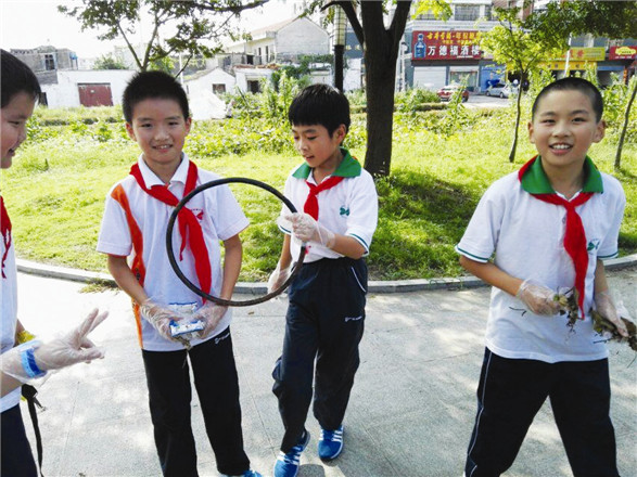 杨老师通过仔细观察队员的日常行为,寻找队员身上普遍存在的问题,有针对性地确定队会主题。如:国庆节举办了《祖国妈妈,我爱您》的主题队会,通过国情知识教育,收集祖国之最,对队员加强热爱祖国和增强民族自豪感的教育。为了将绿色环保意识深入到每个队员心中,中队开展“绿色环保”主题队会。会上队员们通过情景表演,诗歌朗诵,家乡环境变化汇报及展示“绿色环境保护”小报活动,让队员明白环保并不遥远,保护校园美好的环境,人人有责。队员们积极参与了主题队会的设计、策划、运行的整个过程,动手、动脑能力都得到提升。在思想品德教育的同时,杨老师组织队员们积极参加各类实践活动,如:校内外垃圾大搜捕活动,参观自来水厂,到花园湖观察秋天……这样润物无声的教育,使得队员们的综合素质、实践能力都得到培养。