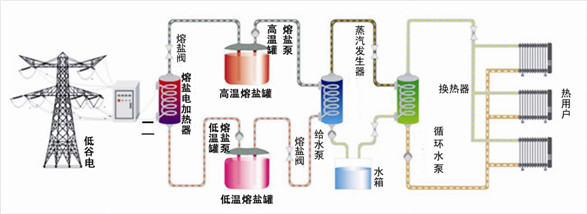 用电加热熔盐蓄热供暖示意图(图片:jinhe-energy)