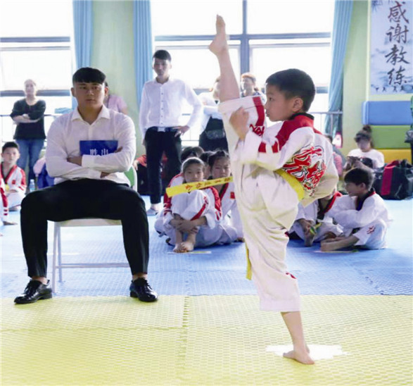 记得在幼儿园的暑假里,我在电视上看见两位大哥哥在比赛,动作非常的酷,有动画片里飞人的感觉,爸爸告诉我这项运动是跆拳道。我被这项运动深深吸引了,我告诉爸爸我也想学习跆拳道,爸爸马上给我报了跆拳道培训班。我在老师的教导下,一个一个动作认真地练习,横踢、下劈、后踢、旋风踢、后旋踢、前手拳、后手拳……我流下了无数的汗水和泪水。在参加跆拳道学习的 一年半时间里,我已经从一个什么动作都不会的菜鸟,变成了跆拳道黄绿带选手。在这一年多的学习中,我学会了忍耐和坚持,我变得更坚强了