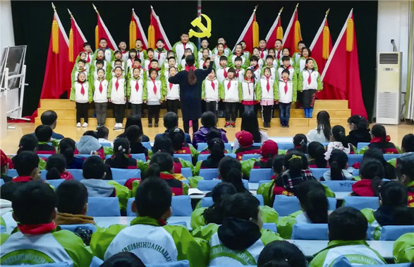 淮北市淮海路小学 唱红歌 颂党恩 □徐 华 近期,淮北市淮海路小学举行“唱红歌 颂党恩”合唱比赛。《中国少年先锋队队歌》《没有共产党就没有新中国》《红星闪闪》《少年中国梦》等一首首经典歌曲,唱出了同学们对祖国美好河山的赞美和热爱,更倾吐了新时代少先队员的理想和胸怀,对伟大祖国深沉的爱。学校希望通过此次红歌赛的举办,以文艺表演的形式,在同学中进一步宣传十九大精神,歌颂党的恩情,使广大学子不忘初心,砥砺前行,为实现中国梦而努力奋斗。