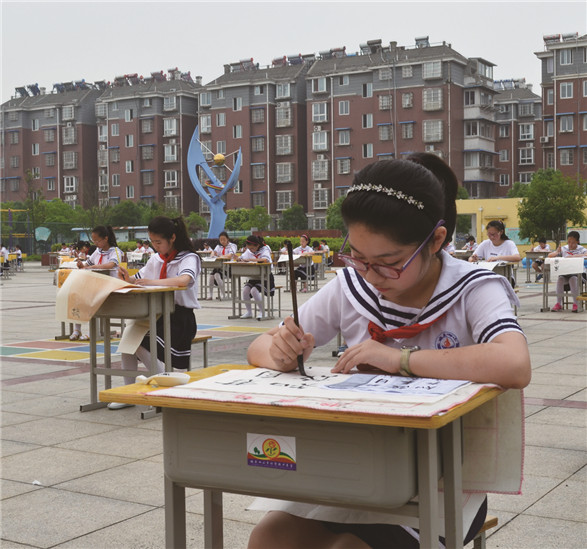 □严 静 黄 娟 魅力社团 繁昌县繁阳镇城关四小“墨韵”书法社团 春天在风筝上书写、夏天在扇面上书写、秋天在落叶上书写、冬天在对联纸上书写。哇!是什么地方可以这么的诗情画意呀?小J姐姐带着同学们的疑问来到了繁昌县繁阳镇城关四小的“墨韵”书法社团。 “墨韵”书法社团有60名热爱书法的同学,他们在老师的指导下从笔画——单字——结构——作品的临摹逐步递增学习进度。书法学习是一项需要长期坚持的学习活动,同学们在学习的过程中不仅练了一手好字,还培养了耐心及良好的学习习惯。因此,书法社团深受同学们和家长们的喜爱。六(3)班的孙晟浩同学向小J姐姐分享了他学习书法的心得:“三年前,我参加了学校书法社团。书法中的汉字在我看来十分美妙,因为它们可以呈现出时代的变化与升华,同时也让我的知识面更广。在练习书法的过程中,我掌握到几点临摹技巧:欣赏书法家的字要认真、细致;落笔时要找准笔划的位置形态;写完字后要与原字对比,找出自己的字有什么地方写得还不够好,及时找到原因进行纠正。书法,不仅可以作为一种语文基本功训练,使自己的字多几分风范,还可以陶冶情操。” 几年来,“墨韵”书法社团参加了多项比赛并获得了优异的成绩。社团老师根据课程安排,时常带领同学们参加户外书法活动。繁昌县繁阳镇城关四小先后取得了安徽省语言文字示范学校、未成年人思想道德教育示范学校、繁昌县写字教育特色学校、安徽省书法教育示范学校等称号。如同六(2)班许凤婷同学所表达的“书法是我国几千年的文化精髓,方块字更是古人的智慧结晶,作为华夏儿女,我们都有义务和责任去传承它。”
