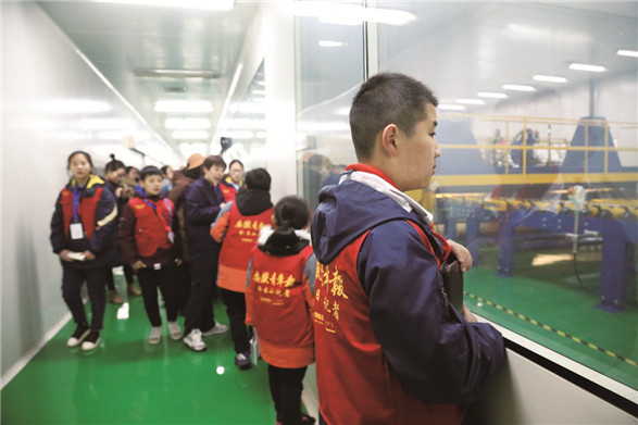 在蚌埠中建材信息显示材料有限公司综合管理部副部长孙亚文阿姨的接待下,学生记者来到玻璃生产车间,见证了玻璃的生产过程,车间里看不到人,全是机械化运作,工作人员则在后台操控。