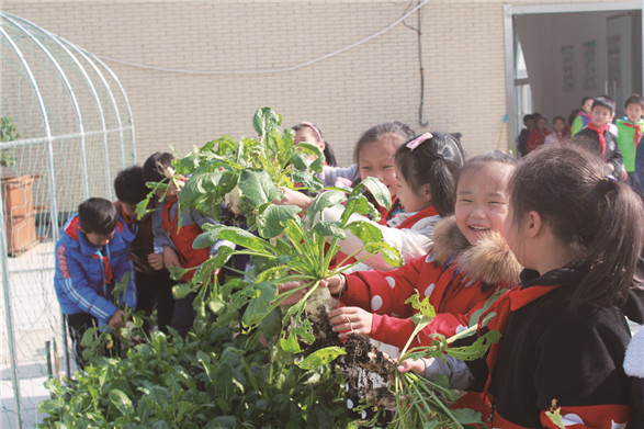 合肥少儿艺术学校 追求卓越 超越自己 近日,合肥少儿艺术学校2018年秋季运动会暨第七届体育节拉开序幕。瑶海区教育体育局党委副书记李存银、体卫科科长陈普文,以及学校主要领导出席了开幕式。 开幕式上,学校特有的舞龙队、管乐队、非洲鼓乐队等分别进行了精彩表演,他们的表演激情四射,让人热血沸腾,赢得了现场老师和同学们的一片欢呼喝彩。合肥市少儿艺术学校校长吴敏为开幕式致辞。运动员、裁判员代表上台宣誓,李存银宣布体育节正式开幕。 作为合肥少艺的“三大节”之一,体育节已经成功举办了六届,成为了学校一道靓丽的风景线。历时两天的体育节,包括有广播操比赛、亲子运动会、拔河比赛、田径运动会等一系列项目,真正做到了让每一个孩子“尽情运动,展示个性”。合肥市芙蓉小学 拔萝卜咯 □胡萍萍 日前,合肥市芙蓉小学“幸福农场”的萝卜喜获丰收,娃娃们一边高唱“拔萝卜”的歌谣一边争相拔着萝卜,一个个新鲜水嫩的萝卜破土而出,同学们乐开了花。