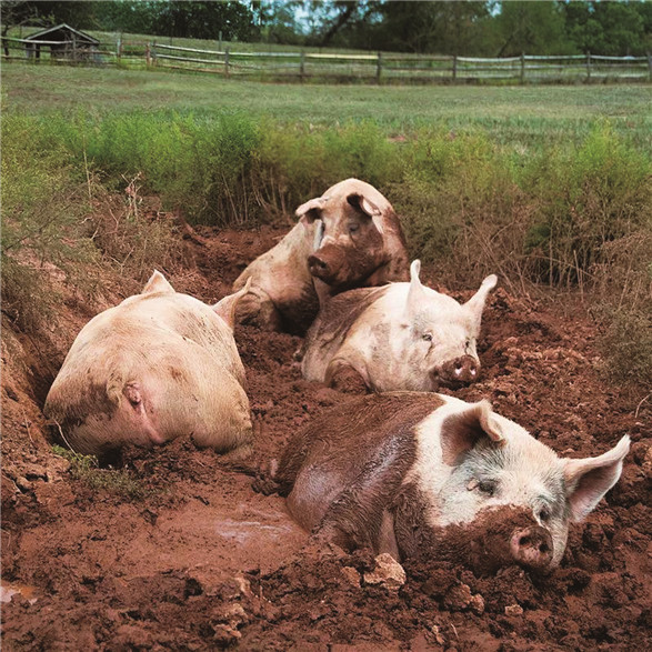 而且,只要细心观察你就能发现,即使是在环境糟糕的猪场,猪也有自己固定吃饭、睡觉和上厕所的地方,要不是人们给它提供的空间太小,它才不想变脏呢。有的人觉得猪喜欢在泥地“打滚”让自己变脏,其实不然。它们之所以会在泥地里打滚,一来是因为没有汗腺,不能排汗散热,跳进淤泥中能让身体保持凉爽。其次,覆盖在身上的一层淤泥还是有效的保护膜,可以防止蚊虫的叮咬,在淤泥干掉之后,还能顺带把身上的虱子和寄生虫给一并驱除了。所以滚淤泥对于猪来说,就是一种自洁的行为。