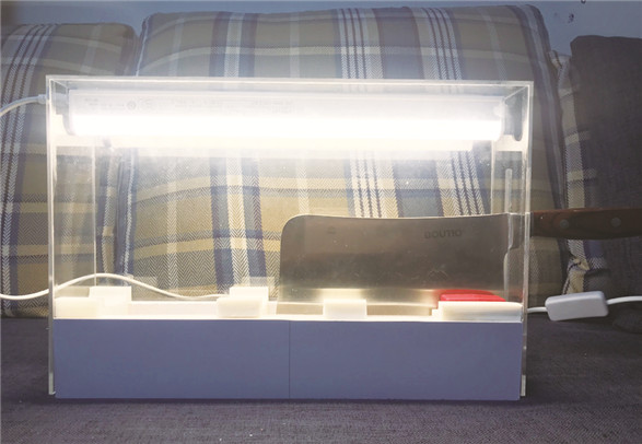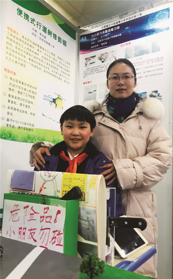 学校 合肥市六安路小学翠微分校三年级 作品名称 自动磨刀杀菌消毒刀架 “真是太爽啦!”对于在科技创新大赛上获奖的事,现在回想起来,我还是意犹未尽呢! 以前我们学校就举办过小创客比赛,但经过这次大赛,我觉得我可以大声地告诉别人:我是一名真正的小创客啦!除了能参加省赛这件天大的好事之外,我觉得更重要的是我收获多多。尤其是做事的科学方法。从一开始只是个小创意点子,到后来画图纸、改图纸,再到后来做模型、检测模型,这一步步走下来,感觉就像变魔术一样,让我切身体会到了科学真的太好玩了! 我的创作初衷是经常听见奶奶在切菜时说:哎,菜刀又钝了,下次让爷爷从老家带块磨刀石来磨一磨……我就在想,能不能设计一款很方便的磨刀石,让奶奶能轻松磨刀而不用找爷爷帮忙呢?如果能附带给刀具消消毒,那就更好了!我的设计主要包括三大部分:一是刀架,用于放置菜刀,内部装有磨刀石和消毒装置。二是磨刀装置:内部有砂轮,通过每次抽取菜刀时摩擦砂轮,使菜刀维持锋利程度。每一次使用菜刀的过程,都是一次磨刀的过程。三是消毒装置,刀具闲置时,通过内部的紫外线进行消毒处理。 记得在做刀架外壳模型的时候,遇到了选用什么材质做的问题。经过一番曲折,最终我在网上查到可以用亚克力板材料。通过这次大赛的锻炼,让我尝到了平时多观察、多思考的甜头!我现在脑海里又有好多新的想法啦! 王子轩的指导老师傅世秀说,不仅王子轩成长了,身边的同学也一起在成长!赛后,王子轩将“磨刀”的发明过程和心得与同学进行了分享,大家的热情很高,在点赞的同时,还纷纷献策。“目前我们正在对第一代产品进行优化改良,将新的创新想法付诸实际,积极备战省赛。” 王子轩 王子轩的作品