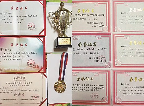 我爱朗诵。每次学校组织的各类朗诵、演讲比赛,我都积极地参加,并且取得了可喜的成绩。当然,每次比赛前班主任张老师事先都会从班级选出几位优秀的选手现场PK,最终胜出的一位参加学校总决赛。记得三年级时,我第一次代表班级参加“学雷锋树新风”讲故事比赛时,我既兴奋又紧张,脑子“嗡”的一下忘词了,张老师微笑着鼓励我:“放松,放松,千万不要紧张,就像我们平时练习一样,正常发挥就行了。”听了张老师的话,我紧张的心情瞬间平静了下来,站到台上,自信满满地讲述起来,我超常发挥,取得了全校“二等奖”的好成绩。还有一次,我担任中华经典诗词诵读《明月几时有》的领读领唱,取得了“一等奖”的好成绩,这些成绩自然是爷爷时常向邻居夸口的“资本”啦。