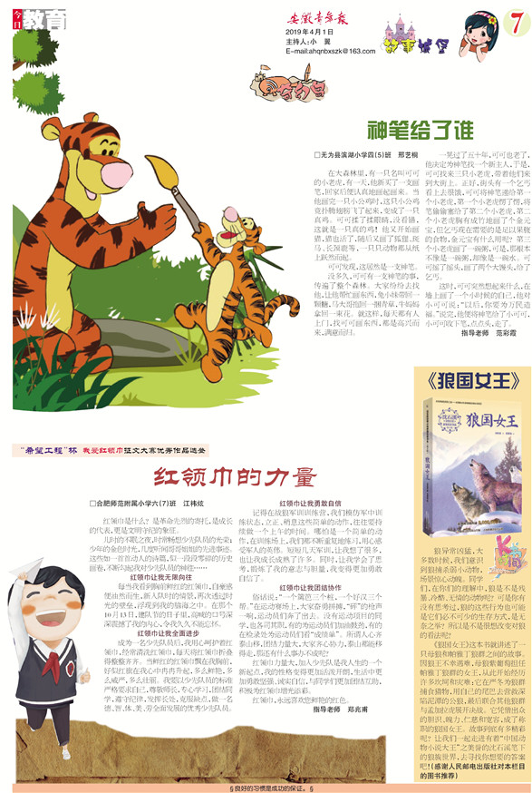 《安徽青年报·学生周刊》励志启智,开阔视野,净化心灵,陶冶情操,参与互动,集新闻性、知识性、趣味性、互动性为一体,是小学生成长的良师益友、参与互动的平台、沟通老师家长的纽带。