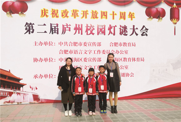 灯谜世界趣味多。从开展灯谜社团活动开始,逐步由点及面,不仅让同学们了解灯谜知识、获得猜谜方法、传承灯谜文化,还能拓宽同学们的知识广度与深度,开发智力,提高综合素质,起着“细雨湿衣看不见,闲花落地听无声”的效果。在合肥市第二届庐州校园灯谜大会中,虽然学校选派的参赛同学在比赛中年龄最小,但是丝毫不胆怯,反而通过比赛知道了与他人的差距,还增长了见识、开阔了视野。