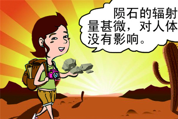 真正的“追星族” 今年29岁的杨可欣,在5年的时间里,和伙伴们往返沙漠、戈壁滩上百次,穿越罗布泊腹地,行走了近8万里,共猎得陨石600多颗,被外界称为“追星星的女人”。她表示:“陨石的辐射量甚微,对人体没有影响。”同时提醒一些陨石爱好者:“寻找陨石需要一定的经验和对陨石散落带地形的了解,不可盲目前往,以免发生意外。”
