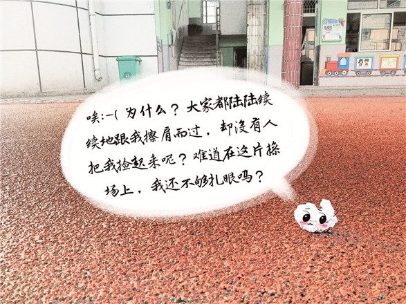 “团团”的回家路 最近,安庆市迎江区华中路二小自创了一组“小漫画”讲述了环保“大道理”,受到广大师生家长的点赞和纷纷转发。这组漫画主要讲述了一个名为“团团”的废纸团被随地丢弃在操场以后的漫漫回家历程。一起来看看吧!