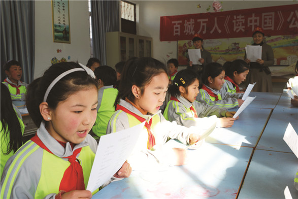 淮北市南山村小学 爱国诗篇集体诵 □赵 鑫 3月15日,国家税务总局淮北市税务局组织青年志愿者,带领学生们一起诵读诗歌《读中国》。 据悉,淮北市南山村小学只有96名师生,在去年的洪涝灾害中受灾严重,如今在社会各界的帮助下,学校恢复了正常秩序。学生们的内心对党和人民充满着无限的感激之情,在课余时间朗诵爱党爱国诗篇是他们的一大爱好。 丁星火 梁 红/摄