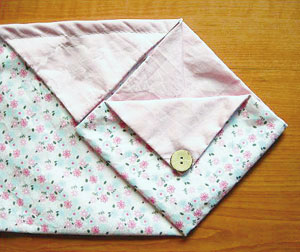 7,如图折叠(好像在折纸哦),下翻,钉上一粒扣子固定。