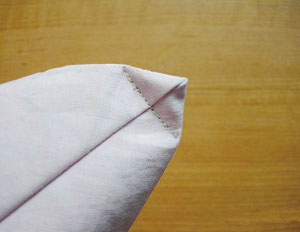 10,翻转已经成型的口袋,用针线给口袋的底部定型。