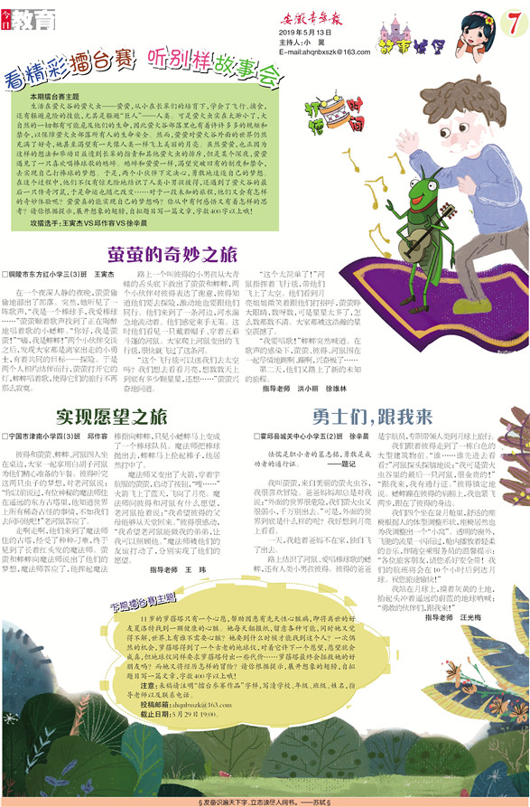 注意:来稿请注明“擂台参赛作品”字样,写清学校、年级、班级、姓名,指导老师以及联系电话。