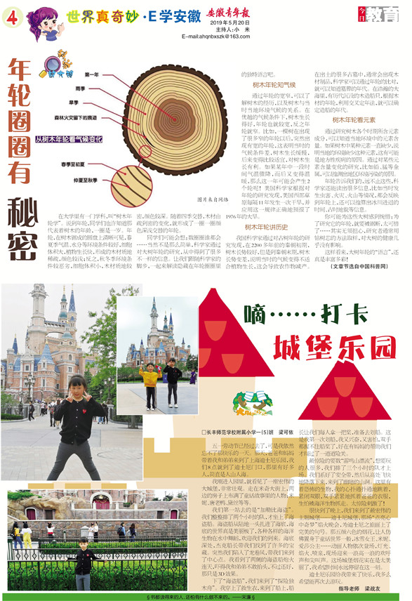 在大学里有一门学科,叫“树木年轮学”。说到年轮,同学们也许知道那代表着树木的年龄,一圈是一岁。年轮,在树木锯成的圆盘上清晰可见,春夏季气温、水分等环境条件较好,细胞体积大,植物生长快,形成的木材质地稀疏,颜色较浅;反之,秋冬季环境条件较恶劣,细胞体积小,木材质地较密,颜色较深。随着四季交替,木材由疏到密的变化,就形成了一圈一圈颜色深浅交替的年轮。