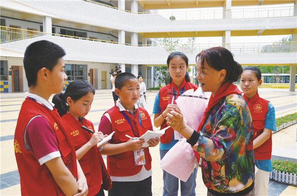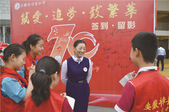 同时间,本报“我与祖国共成长,学生记者看身边大变化”主题活动也在进行着,来自习友小学的五位学生记者代表手拿纸笔,穿梭于各个活动场地,现场采访了校长张云、退休老教师张毅、学生家长、参演学生等人,在实践与对话中了解学校的变化,感受祖国的发展。这次活动,我们的学生记者有着怎样的精彩表现呢?一起来看看吧!
