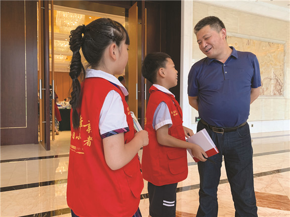 岳胤泽:通过在会上采访专家叔叔阿姨们,让我大有收获,其中让我印象最深刻的一句话就是:虽然在学校里的好成绩很重要,但是我们作为家庭中的一分子,从小拥有良好的品质也同样重要,我们要跟着爸爸妈妈一起努力创造美好生活,继承他们的优良传统。