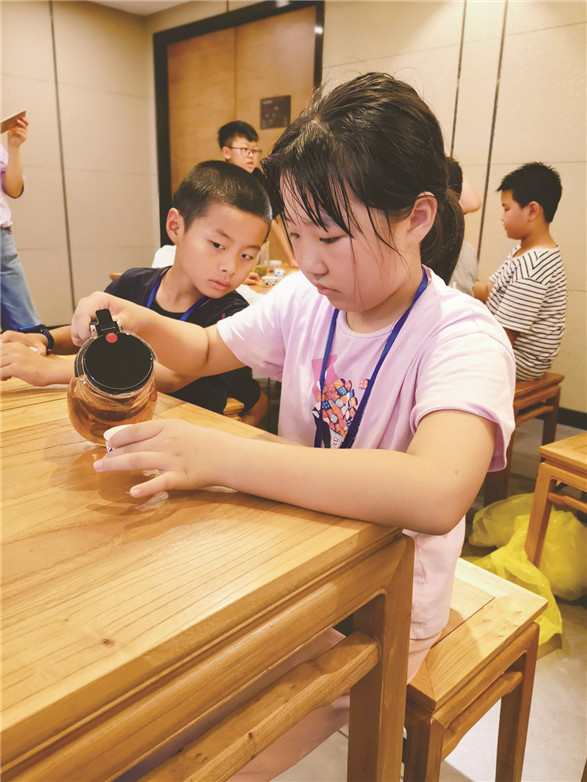 之后在室内,在专业师傅的带领下,学习烘茶、捻茶、制茶的过程,在博物馆品味中国博大的茶文化,在小讲堂研习泡茶的礼仪。