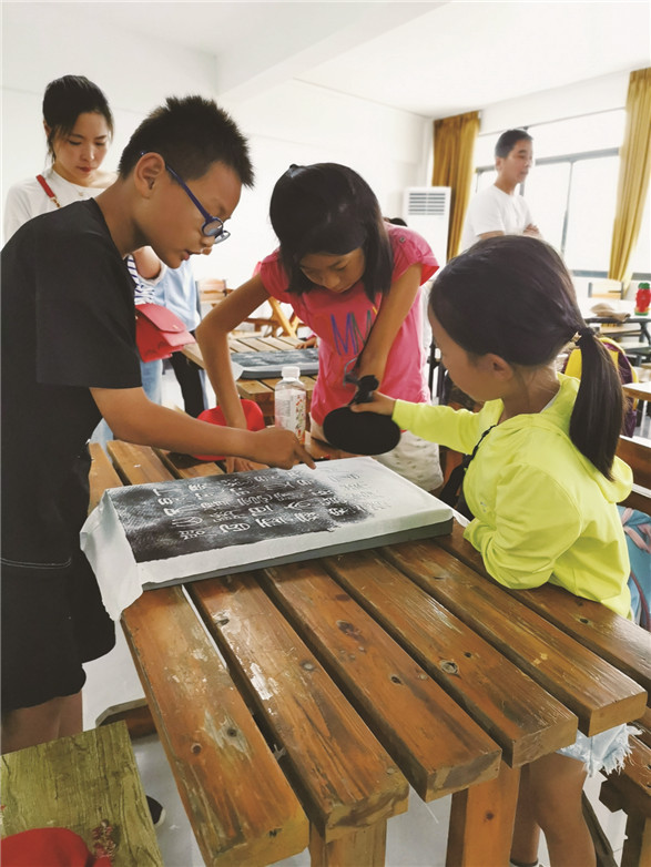 吃饱喝足,我们在徽州传统工艺师的带领下,亲手制作了宣笔和碑拓,在一次次耐心地拓印和涂胶中,再一次感受了传统工艺的精美与传承。