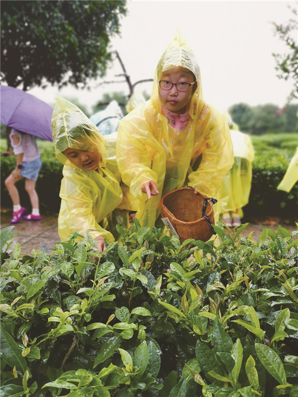 第四天,黄山下起了暴雨,不想错过夏令营每一次探险的我们,冒雨参观了谢裕大茶园,体验了一把雨中采茶的乐趣。