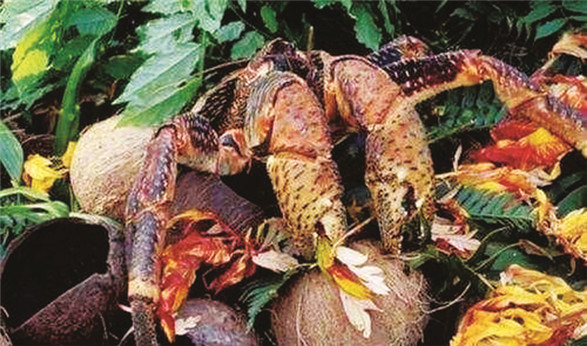 小鹿打开话匣,这个就要说到世界上最奇特的螃蟹之一了,椰子蟹是一种体型巨大的螃蟹,它们的生长习性很特别,由于身体慢慢地适应了陆地,所以可以长时间不下水,而且,它们最喜欢的食物,还是长在椰子树上的椰子。