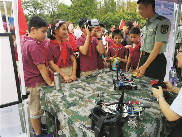 礼赞共和国 智慧新生活 □周静茹 9月15日,来自合肥市西园新村小学南校教育集团嘉和苑校区的200余名师生,参与了在国防科技大学举办的全国科普日安徽省主场活动。该活动以“礼赞共和国 智慧新生活”为主题,通过活动,同学们培养了创新意识以及动手、动脑的能力,拓宽了科学知识面,激发了他们学科学、爱科学、用科学的兴趣。 精彩的科普活动现场