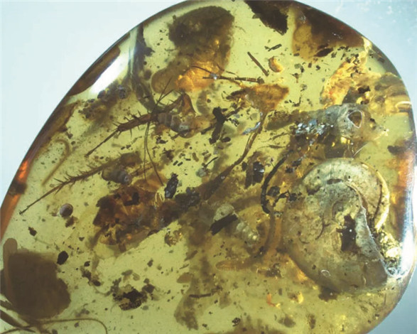 近日,中科院南京地质古生物研究所的研究人员,在一枚缅甸琥珀中发现了陆生生物和罕见的海洋生物化石集群。谁能想象到,一枚硬币大小的琥珀中,居然包含了40多个古老生物,1个菊石、4个螺类、4个等足类(即常说的西瓜虫)、23个螨虫、1个蜘蛛、1个马陆和至少12个昆虫成虫标本(蟑螂、甲虫、蠓和蜂)。