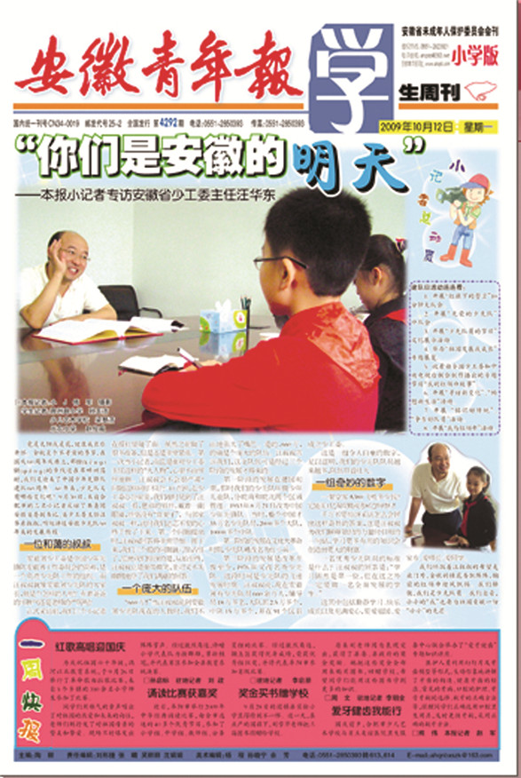 9月30日,学生记者采访了原共青团安徽省委副书记、省少工委主任汪华东叔叔,听他讲述安徽少先队60年来的发展历程。