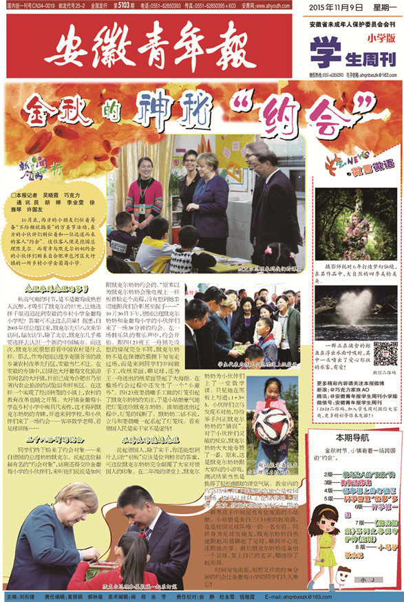 10月底,前德国总理默克尔走访合肥金葡萄小学,本报全程关注。