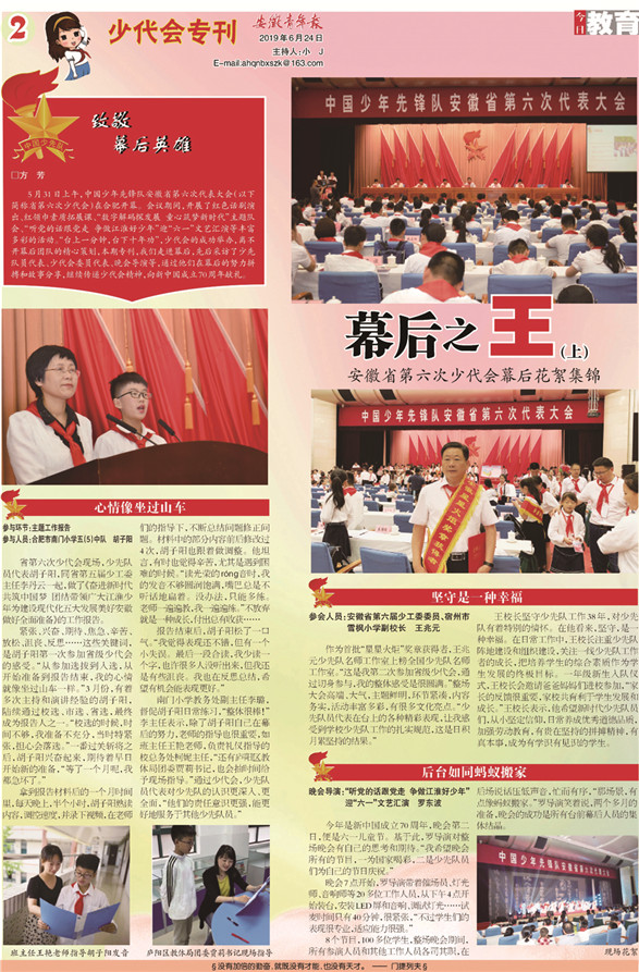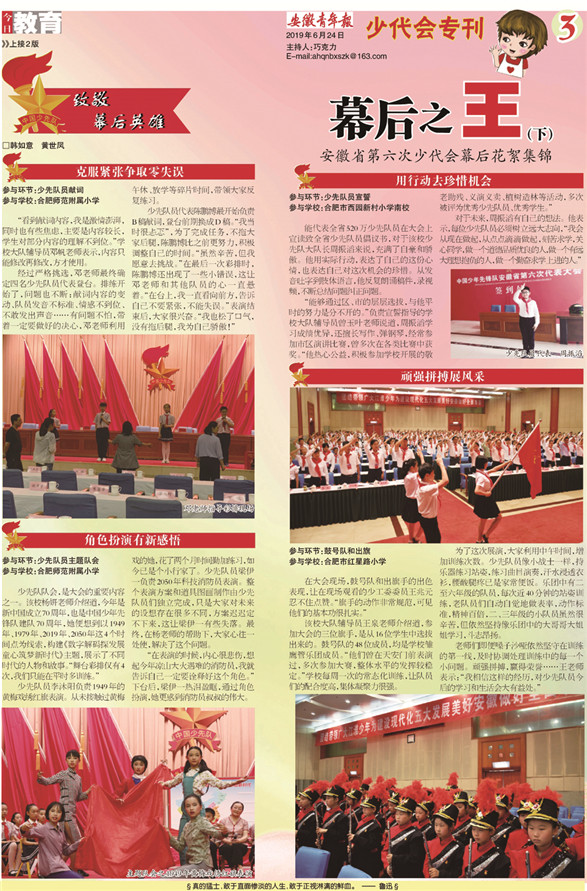 6月24日,本报推出少代会专刊,集结整理安徽省第六次少代会幕后花絮集锦,通过他们在幕后的努力拼搏和故事分享,继续传递少代会精神,向新中国成立70周年献礼。