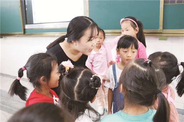“一年级的孩子小,坐不住,我就想一些办法来吸引他们的注意力。”姚老师说,一些经典的故事蕴含着中华传统美德,她就特意在孩子们疲倦的时候放下课本,讲述故事,专挑些内容生动有趣的故事来讲,把“真善美”的种子悄悄播撒在他们心里。