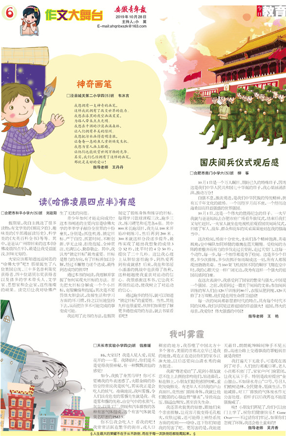 《安徽青年报·学生周刊》励志启智,开阔视野,净化心灵,陶冶情操,参与互动,集新闻性、知识性、趣味性、互动性为一体,是小学生成长的良师益友、参与互动的平台、沟通老师家长的纽带。