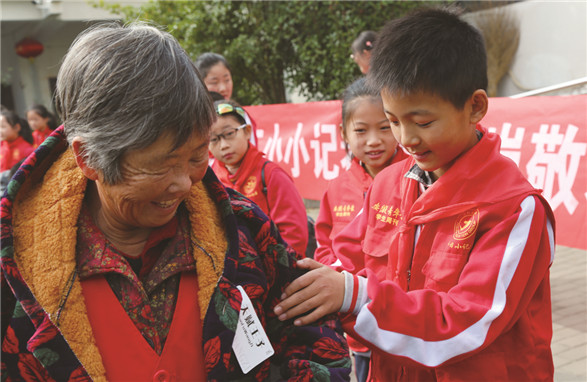 老吾老,以及人之老。姚岗村敬老院,是颍上县敬老院之中规模最大的脱贫兜底的样板工程,集餐饮、娱乐、卫生、储藏等于一体。在敬老院内,学生记者们手捧棉衣,敬献孤寡老人。大家齐唱歌曲《东方红》,以传递党的温暖与同学们的爱心。这个画面让徐梦晨久久不能忘怀:“希望在这个寒冷的天气里,我们的到来能给爷爷奶奶们带来真正的温暖。”