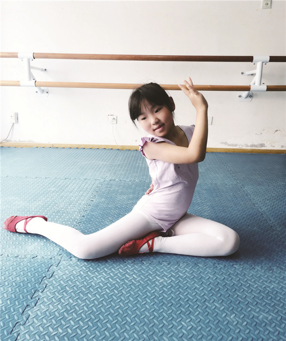 虽然放弃了拉丁舞,但我心里依然挚爱着舞蹈。在妈妈的鼓励下,我开始学习了中国舞。中国舞和拉丁舞有很大的区别,中国舞主要练习形体跟身体的柔软度。刚开始,老师只针对我们做训练的第一步——劈叉。老师要求将双腿放平,把头压在膝盖上坚持三分钟,腿不能弯,手抱住脚板……在这个过程中,仿佛每一秒都是煎熬。我告诉自己:不能放弃。我试了一次又一次,最终咬着牙坚持了下来。