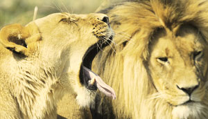 老婆,大家都在晒太阳呢,你注意点形象!怎么说你也是大草原上的王后啊……