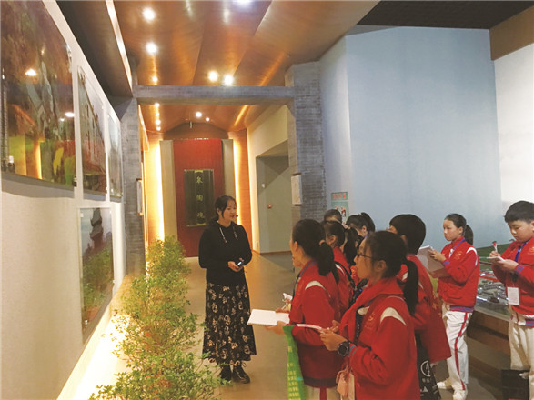 在“星光灿烂”陈列馆,学生记者在这里了解到了很多古代英才和著名作家,孙叔敖、周瑜、黄歇、蒋光慈等,“很多都是在电视剧里看到的历史人物,想不到都曾经生活在六安这片热土。”学生记者夏文希对家乡的人才辈出由衷地感到自豪。在红色革命战区,梁阿姨说起被中央军委确定为36位中国人民解放军军事家之一、大别山之子许继慎的英勇事迹,听着他救国救民之路的艰难历程,王婧冉不由得心生敬意:“正是有了他们的大无畏精神,才有了我们今天的幸福生活,再次为缔造新中国而奉献热血与生命的革命先烈们致敬!”