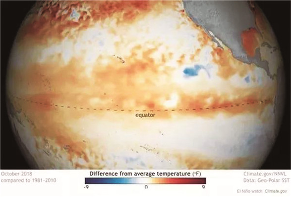 最后,从2018年12月份开始直到2019年3月份,南方一直是雨雪天气,而现在恰恰相反,江淮地区连续性干旱。这一切原因都与厄尔尼诺现象有关。厄尔尼诺的酝酿可以说已经发布很久了,在2018年10月开始,赤道中东太平洋开始增暖,虽有起落,然而不影响它的持续发展,今年年初的雨雪和秋冬之际的干旱与厄尔尼诺是分不开的。