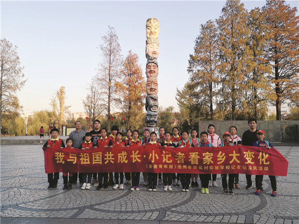 11月22日下午,来自池州市贵池区杏花村实验学校的20名本报学生记者身穿红马甲走进清溪河景观公园,他们登上百牙塔,走进池州好人馆,漫步清溪诗画长廊,解密古池州牌坊文化以及傩文化,下面让我们跟随他们的脚步一起去看看吧!