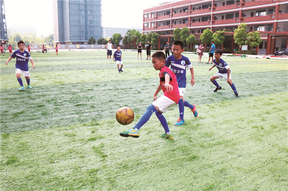 每周一到周五下午3:40到5:40,足球社团都会有系统训练,从不间断,如遇到有比赛任务,周六也会加练两小时。正是因为有训练时间、训练质量的保证,足球队近年来成绩稳步提升。经过三年的磨练,不仅在各项比赛中取得优异成绩,部分优秀足球队员也得到高水平队伍的青睐,其中王天擎进入到恒大皇马足校学习,项永则入选合肥市“希望之星”足球队等。