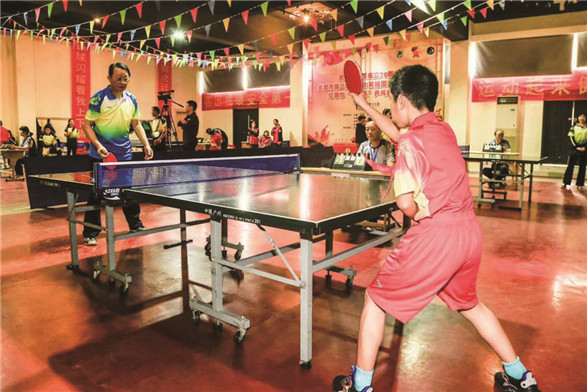 近日,合肥市第二届“心中有祖国 心中有他人”红领巾“老少乐”乒乓球友谊赛在合肥市少年宫乒乓大厅火热开赛。原合肥市政府秘书长陈祖善,率领乐龄队参赛,红领巾少年队的领队是去年的单打冠军韩宇轩,校外教育工作者由合肥市少年宫党支部副书记王怀志叔叔领队。经过现场激烈角逐,教工队、乐龄队、少年队分别获得团体冠亚季军,俞鹏飞、王健、尚乃芬分别获个人冠亚季军。图/顾卫东