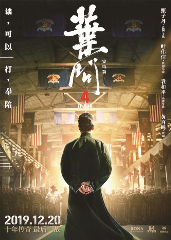 《叶问4》讲述因故来到美国唐人街的叶问,意外卷入一场当地军方势力与华人武馆的纠纷,面对日益猖狂的民族歧视与压迫,叶问挺身而出,在美国海军陆战队军营拼死一战,以正宗咏春,向世界证明了中国功夫。自《叶问》2008年上映,十年时间里甄子丹用炉火纯青的“甄功夫”,带给观众一波又一波震撼的冲击。他在系列完结篇《叶问4》中又会展现怎样的武力值,也让影迷充满期待。《叶问4》将于12月20日全国上映,看“宇宙最能打”的甄子丹在美国军营打响最解气一战!