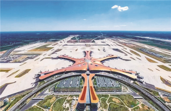 该机场位于北京大兴、河北广阳之间,从动工到投入运行,仅仅四年,占地面积达到140万平方米,体量相当于首都机场1号、2号、3号航站楼加起来的总和,将成为北京的新地标、勾连世界的枢纽。