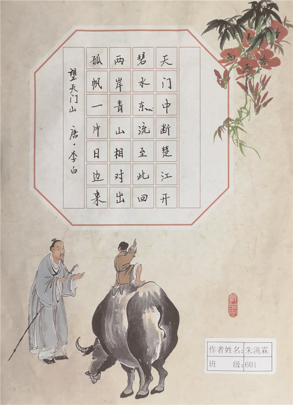《望天门山》 六(1)班 朱洮霖 指导老师 陈玉梅